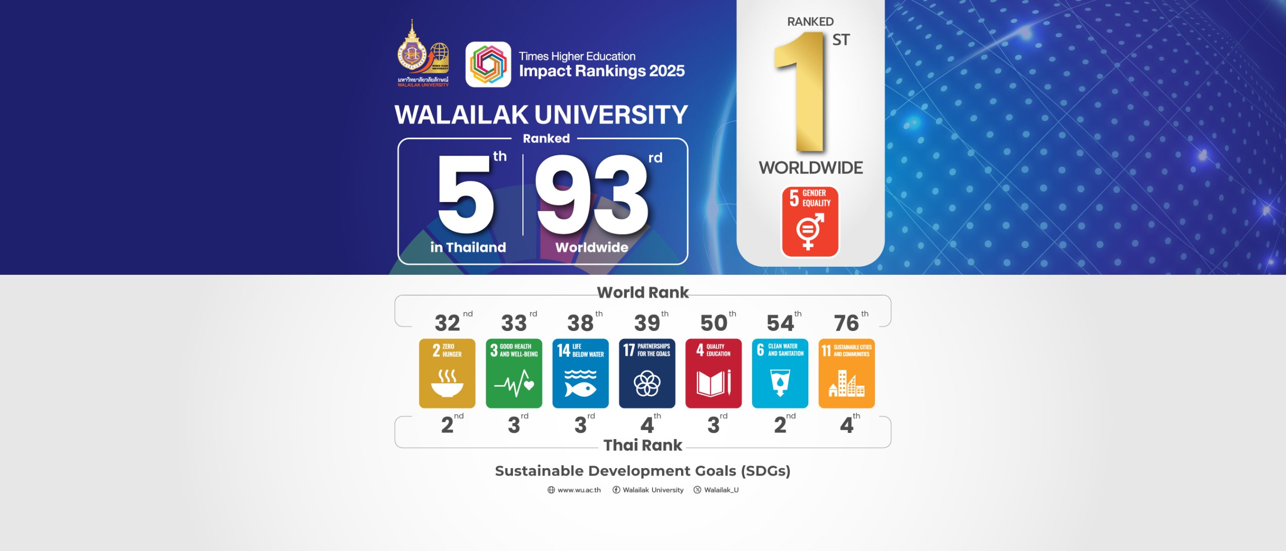มหาวิทยาลัยวลัยลักษณ์ได้แสดงศักยภาพบนเวทีโลกอย่างเต็มรูปแบบ โดยผลการจัดอันดับสถาบันการศึกษาล่าสุดสะท้อนให้เห็นถึงคุณภาพที่ก้าวกระโดด: