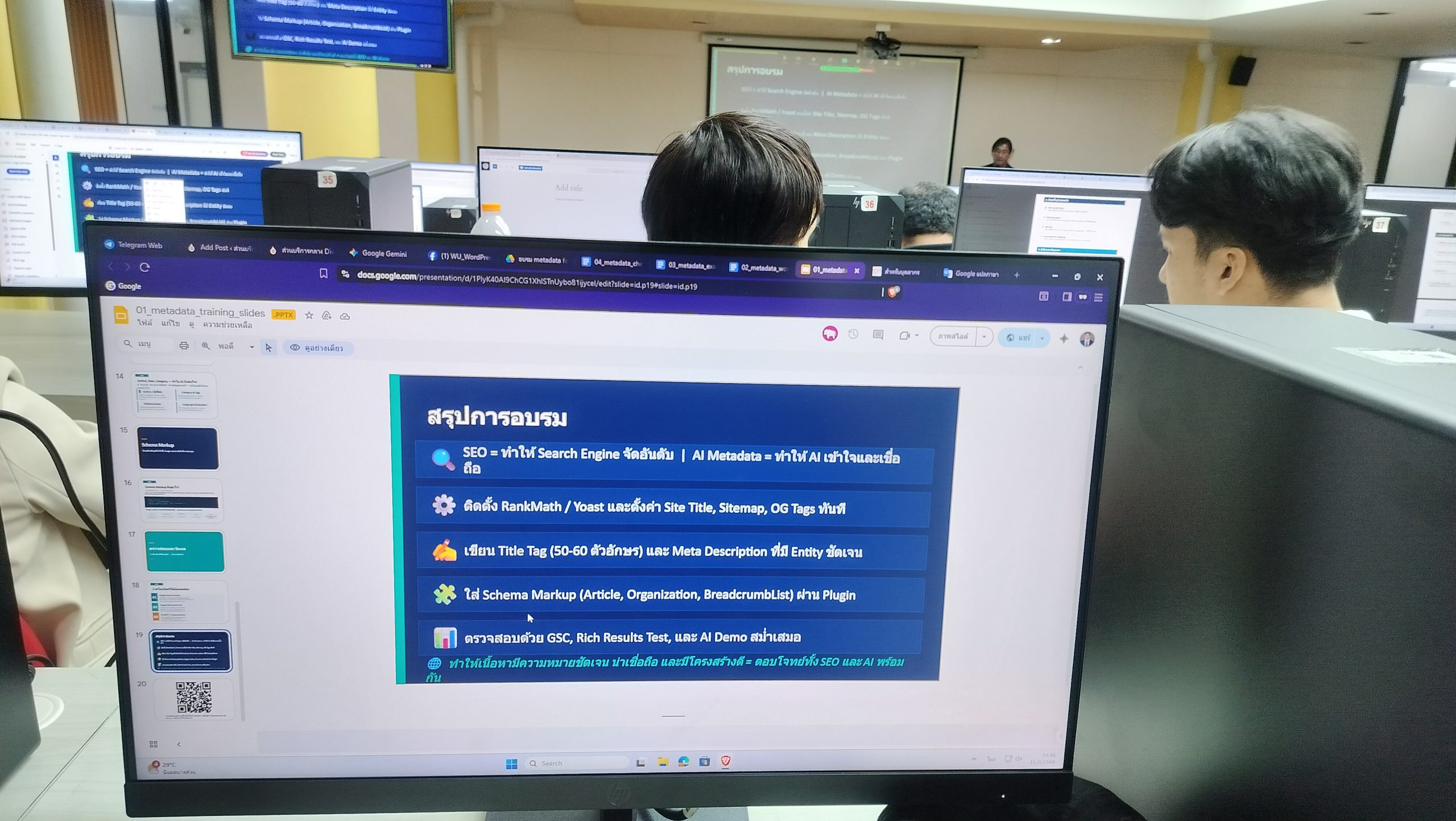 การอบรมครั้งนี้มุ่งเน้นการเสริมสร้างความเข้าใจเกี่ยวกับบทบาทของ Metadata ต่อการค้นหาและการอ้างอิงข้อมูลโดยระบบ AI Search Engines พร้อมทั้งการเรียนรู้แนวทางการเพิ่มและจัดการ Metadata บนเว็บไซต์องค์กร ผ่านการใช้งานเครื่องมือและปลั๊กอินใน WordPress เช่น การเพิ่ม Meta Tags, Structured Data และ Alt Text รวมถึงการใช้ Checklist และแนวทางการประเมินเว็บไซต์ เพื่อปรับปรุงเว็บไซต์ให้สอดคล้องกับมาตรฐานของมหาวิทยาลัย