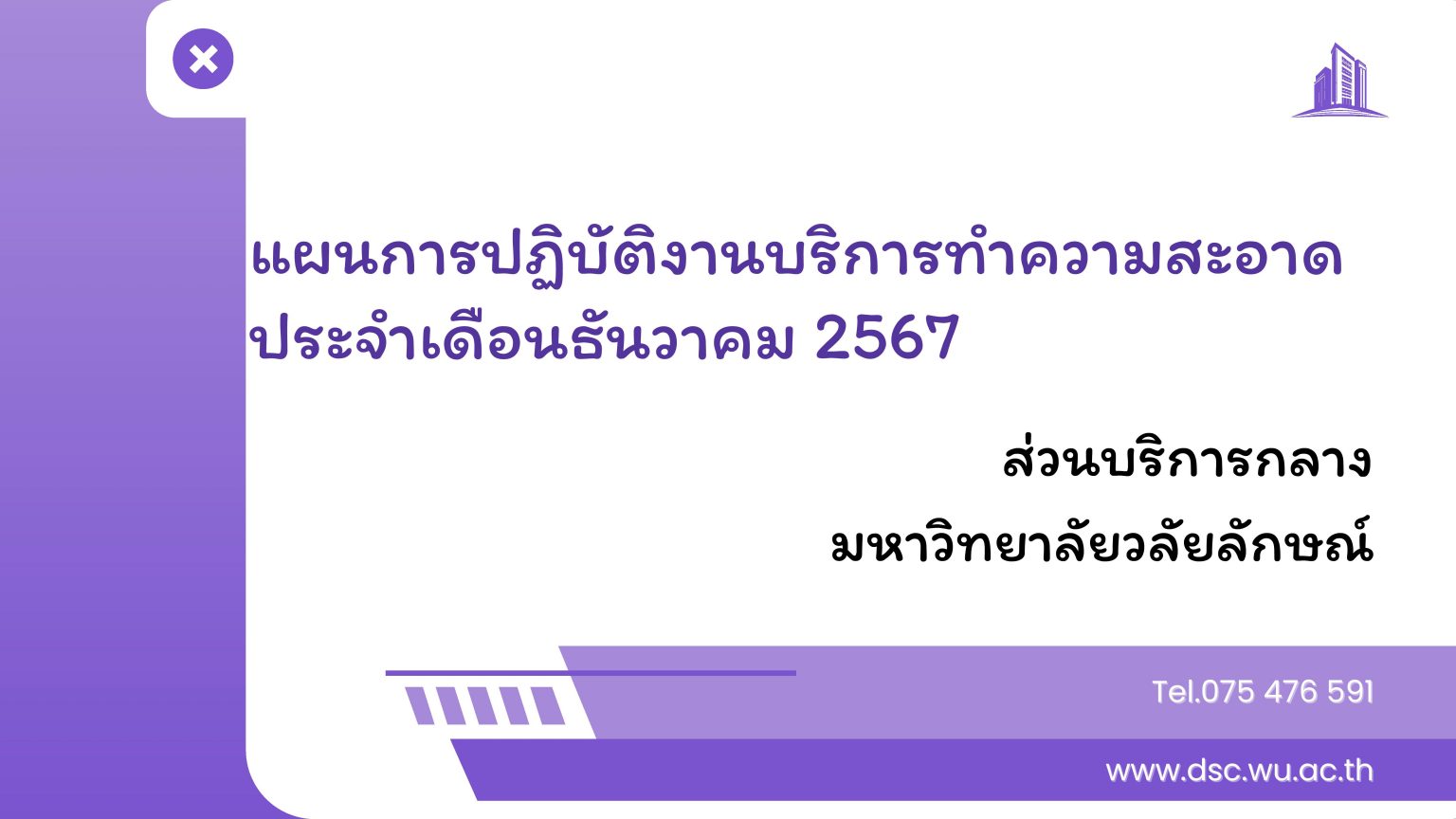 แผนการปฏิบัติงานบริการทําความสะอาด ประจําเดือนธันวาคม 2567